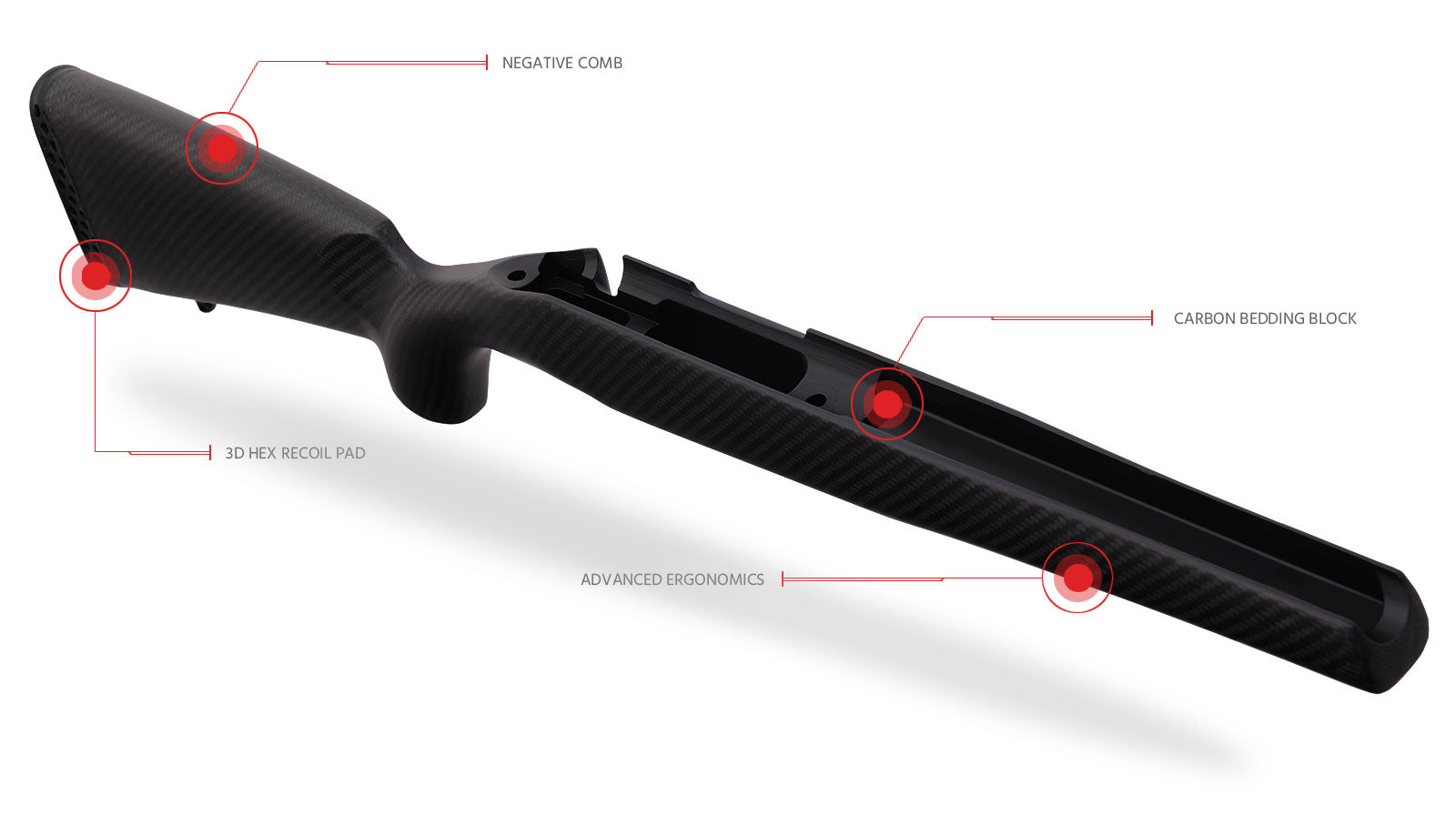 Coming in at 20 ounces, the Blacktooth reigns supreme as the lightest production carbon fiber stock on the market.