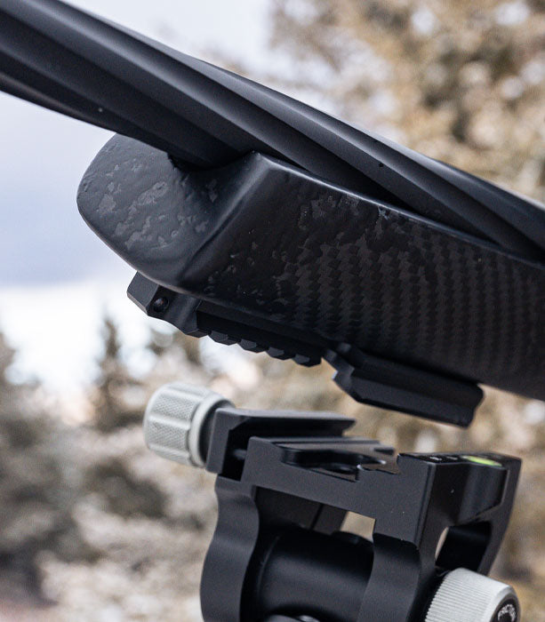 Bonded to the outer shell and working in tandem with a set of aluminum pillars, this slip of carbon takes the place of a much larger and heavier aluminum bedding block. The Carbon Fiber Bedding Block allows recoil impulses to transfer directly from the recoil lug of the action to the outer shell of the stock.